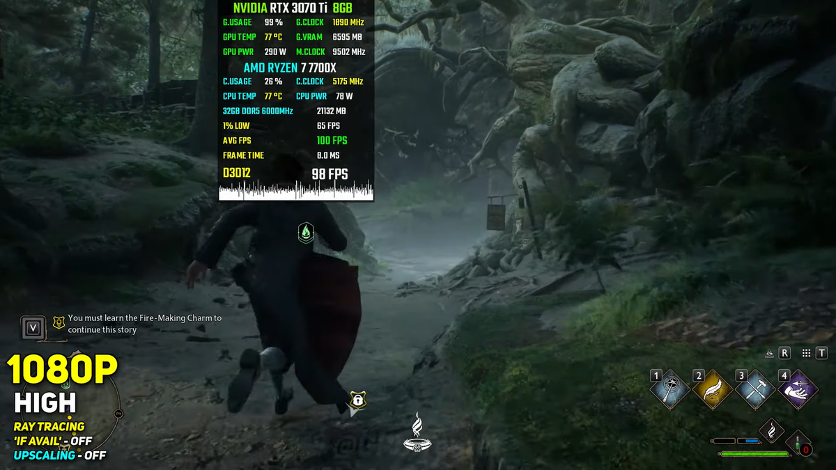 В одном из выпусков на YouTube-канале GPU Tester выяснили, как себя ведёт в Full HD видеокарта RTX 3070 Ti. Среди протестированных игр были такие, как Star Wars Jedi: Survivor, Hogwarts Legacy, A Plague Tale Requiem, Dying Light 2 Stay Human, Forza Horizon 5, Cyberpunk 2077, Need for Speed™ Heat, God of War, Marvel's Spider-Man Remastered, Marvel’s Spider-Man Miles Morales, UNCHARTED™ The Lost Legacy, UNCHARTED 4 A Thief’s End, The Witcher® 3 Wild Hunt, Hitman 3, Shadow of the Tomb Raider, Red Dead Redemption 2, Assassin's Creed Valhalla, Watch Dogs Legion, Doom Eternal, Horizon Zero Dawn. Hogwarts Legacy запускалась с высоким пресетом, RT. Средняя производительность в этой игре была на уровне 100 к/с. A Plague Tale Requiem шла с ультра-графикой, RT. Средний FPS здесь составлял 94 к/с. Forza Horizon 5 тестировалась с пресетом Ultra, RT. Средняя частота кадров в этой игре равнялась 160. В игре The Witcher® 3 Wild Hunt с RT, Ultra-пресетом удалось получить в среднем 120 к/с. Assassin's C