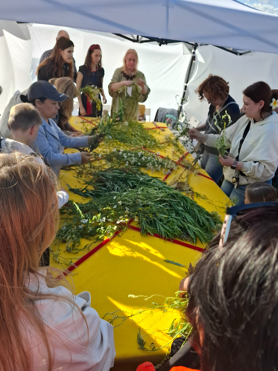 6 июля в Челябинске впервые проводился фестиваль Солнца. К небесному светиле, дающему начало всему живому на земле, люди издавна обращались с приветствием, надеждами и мольбами. Да и современники отдают дань уважения "звезде по имени Солнце". Это был праздник в фольклорном стиле: с концертом народных коллективов, с элементами обрядов, с выставкой народных промыслов и возможностью испытать себя в различных делах. Мероприятие носило семейный характер: здесь было чем заняться и маленьким, и большим. Все желающие могли сплести венок из полевых трав и цветов. Ведь издревле венок символизировал маршрут движения небесных тел вокруг солнца. А желающих оказалось очень много! К палатке для плетения венков мгновенно выстроилась огромная очередь. Но те, кто не выносит толкотни, могли примерить готовый веночек и сфотографироваться с участниками музыкальных народных коллективов. На аллее народных промыслов можно было восхититься мастерством умельцев и приобрести их рукотворные изделия. Можно было ра