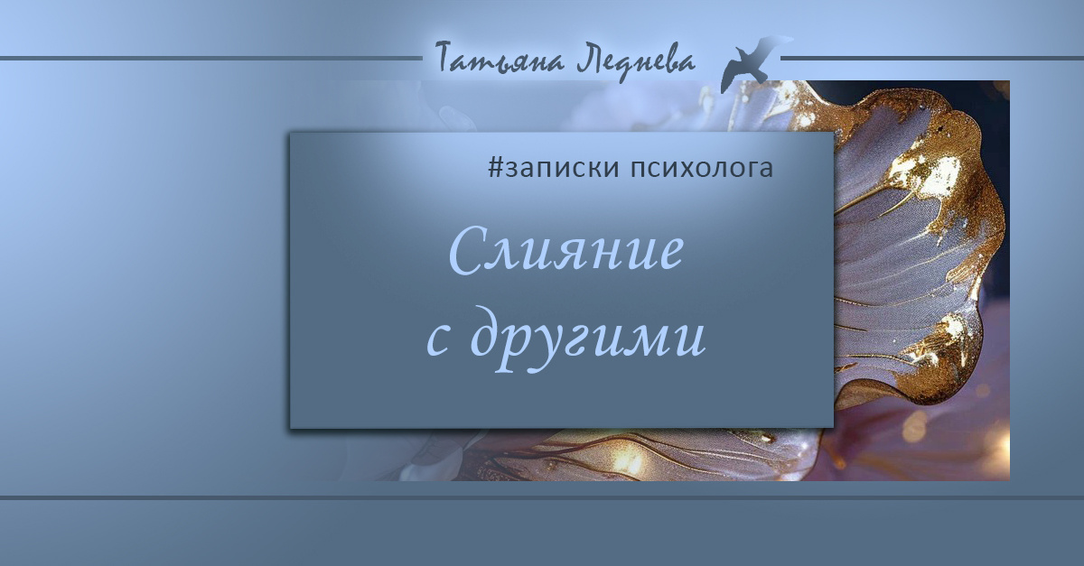 Слияние с окружающими – это состояние, при котором границы личности размыты, нет четкой и сильной структуры, ощущения себя как отдельного и равноправного существа, человек слишком сильно идентифицирует себя с чужими мнениями, ожиданиями или требованиями от других. В результате он теряет ощущение своей индивидуальности и автономии. Он не отдельно, он – в слиянии.