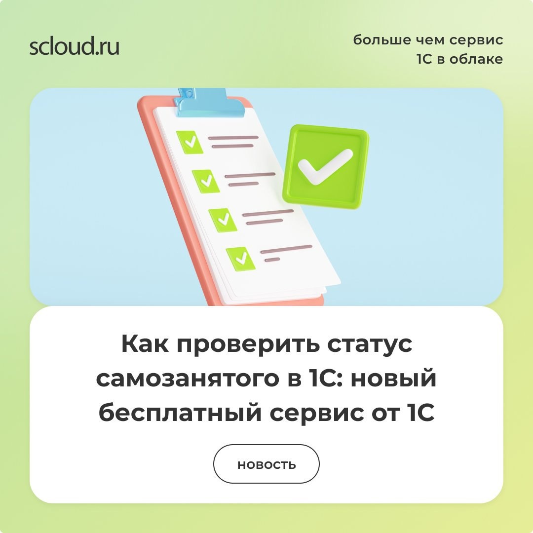 ΠΎΠ΄Β». Π ΠΏΠΎΠΊΠ° ΡΡΠΎΡ ΡΠ΅ΡΠ²ΠΈΡ Π±Π΅ΡΠΏΠ»Π°ΡΠ½ΡΠΉ. πΠΠΎΠ΄ΡΠΎΠ±Π½Π΅Π΅ ΠΎ ΡΠ΅ΡΠ²ΠΈΡΠ΅ ΠΈ ΠΊΠ°ΠΊ Π΅Π³ΠΎ ΠΏΠΎΠ΄ΠΊΠ»ΡΡΠΈΡΡ ΡΠΈΡΠ°ΠΉΡΠ΅ Π² Π½Π°ΡΠ΅ΠΉ ΡΡΠ°ΡΡΠ΅ https://scloud.ru/blog/kak_proverit_status_samozanyatogo_v_1s_novyy_avtomaticheskiy_servis/
