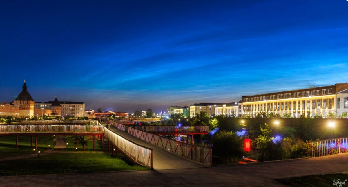 Есть редкие вечера, когда город будто замирает и начинает дышать в унисон с небом. Один из таких волшебных вечеров выдался на днях — над Тулой простерлись серебристые облака. А фотографу Илье Гарбузову удалось их запечатлеть. Они не просто украсили ночное небо — они стали настоящим небесным спектаклем, который лучше всего смотреть с первых рядов. А такие места в нашем городе, по счастью, есть. Серебристые облака — это самые высокие облака на Земле. Они формируются на высоте около 80–85 километров, в мезосфере, и состоят из крошечных кристаллов льда. Их видно только в период с конца мая по начало августа, в основном на широтах от 50° до 70°. Для нас, туляков, это не самое редкое, но всё равно — завораживающее зрелище. Лучшее место, чтобы наблюдать за этим — исторический центр Тулы. Кремль, Казанская набережная, и правый берег Упы. Именно отсюда открывается нужный северо-западный горизонт, именно отсюда облака кажутся особенно объёмными и как бы… живыми. И именно здесь можно соединить в