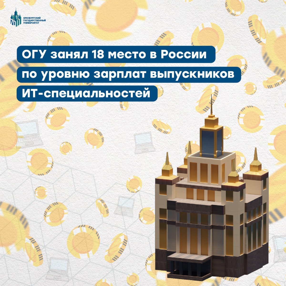 ОГУ занял 18 место в России по уровню зарплат выпускников ИТ-специальностей 👨💻 SuperJob представил рейтинг вузов России по уровню зарплат ИТ-специалистов, окончивших вуз в 2019–2024 годах. Оренбургский госуниверситет расположился на 18-й строчке ранжированного списка. Всего в рейтинг вошли 70 вузов из 35 городов. Выпускники ОГУ в среднем зарабатывают 140 000 рублей в месяц и трудятся в ведущих компаниях отрасли по всей стране. 86% выпускников по окончании обучения остаются работать в Оренбурге. 📍Отметим, что с университетом сотрудничают признанные лидеры ИТ-индустрии с мировыми именами: «Лаборатория Касперского», «1С», АО «Крибрум». Студенты ОГУ – неоднократные победители и призеры всероссийских и региональных олимпиад по программированию, чемпионатов, хакатонов. #ОГУ #в_ОГУ #OSU