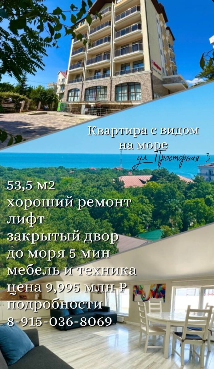 🐬✨ Наслаждайтесь тишиной, морем и свежим воздухом в Геленджике! 🌴💦 Продаю стильные апартаменты в Голубой Бухте — одном из самых спокойных и живописных уголков Черноморья. Находятся на 6 этаже, с шикарным видом на море, где Вы сможете наслаждаться восхитительными закатами и свежим морским бризом. 🏖️ *Идеальное место для отдыха:* до чистейшего пляжа всего 300 метров! 🍃 *Природа и тишина:* Вся территория утопает в зелени, рядом парк с тренажерами и скамейками для отдыха. Здесь всегда спокойно и комфортно. - Просторная площадь 55 м², где все продумано для вашего удобства. - Огромная двуспальная кровать и два комфортных дивана с возможностью разложить на спальные места. - Новый дом с отличным ремонтом, современные лифты и ухоженная территория. - Высокий этаж, откуда открывается прекрасный вид. 🏠 Продается как *готовый бизнес* или идеальное место для семейного отдыха. Рядом с вами — санаторий, магазины, а перед вами — море. 🎉 Всё организовано и готово к работе: администратор, «фе