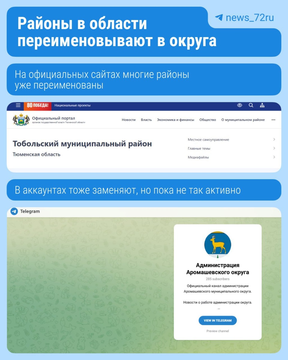В Тюменской области начали переименовывать районы. Теперь они будут округами. Идет переход на одноуровневую систему местного самоуправления. Например, теперь будет не Ишимский муниципальный район, а Ишимский муниципальный округ. 🔖В чем дело? За этими изменениями кроется целая реформа. Власти ликвидируют думы и администрации сельских поселений. Они переходят под управление центра. Будет одна дума и единый бюджет. Все в статусе муниципальных округов.