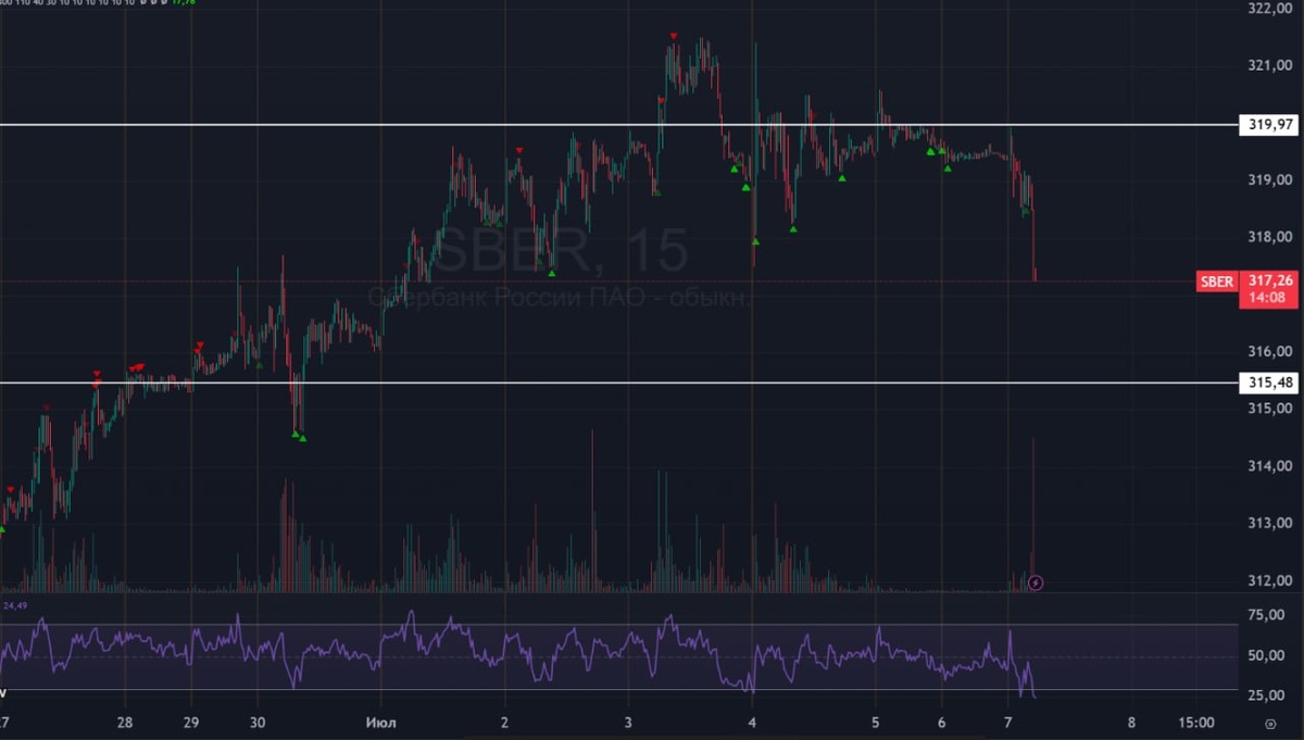 🟢 Сбер - форвард нашего рынка, и сегодня его качественно сливают. Судя по всему. спекулятивный разгон закончен. Ближайшая поддержка 315,50.