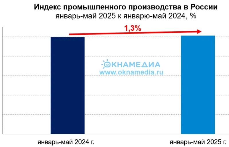 Тренд к снижению роста промышленного производства в январе-мае 2025 в России – аналитика За 5 месяцев 2025 рост промышленного производства в России продолжился по отношению к аналогичному периоду прошлого года. Росстат опубликовал официальные данные по росту промышленного производства в России. Портал ОКНА МЕДИА (ОМ) проанализировал данные и представил их с акцентом на СПК–индустрию. 🔻 Подробности читайте на портале ОКНА МЕДИА https://www.oknamedia.ru/novosti/trend-k-snizheniyu-rosta-promyshlennogo-proizvodstva-v-yanvare-mae-2025-v-rossii-analitika-57008 © оknamedia