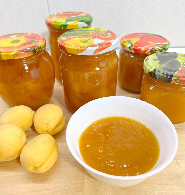 Абрикосы покупаю на рынке, выбираю не переспевшие, плотные. Для варенья нужно взять большую кастрюлю или таз, если такой посуды нет — варите маленькую порцию. Я за раз варю не более 2–3 кг варенья. Половинки засыпаю сахаром 1 к 1 (можно и меньше, в зависимости от сладости абрикосов и места хранения). Оставляю на ночь. На следующий день утром довожу до кипения. Оставляю остыть. Обязательно накрываю крышкой. Когда варенье полностью остынет, снова довожу до кипения. Так варю 3 раза. Абрикосы будут напитываться сиропом и становиться прозрачными. На 4-й раз довожу до кипения, добавляю щепотку лимонной кислоты. Можно проварить несколько минут и закрыть в банки.