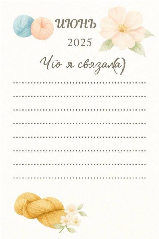 🌞 Доброе утро и с началом июля! Новый месяц — это значит, что пора оглянуться назад и увидеть, сколько красоты вы связали в июне ✨ 🎀 Мы подготовили для вас вязальный календарь 2025 — шаблон для июня, чтобы вы могли сохранить свою историю месяца в красивом и вдохновляющем формате. Это не просто картинка — это визуальный дневник вашего творчества, который будет особенно приятно пересмотреть в декабре 📖🧶 📌 Как пользоваться: 1. Скачайте шаблон месяца. 2. Заполните, что вы связали — от пары рядов до пледа мечты. 3. Сохраните в телефон или распечатайте. 4. Поделитесь! — Выложите у себя с хэштегом #вязальный_итог_месяца — Или пришлите нам в чат — мы очень ждём ваши фото! — Или просто сохраните в своём блокноте — для себя любимой 💛 🌿А если хотите связать ещё больше красивых изделий в новом месяце - успевайте присоединиться к Базовому курс по крючку для продвинутых! Уже сегодня первое занятие! Всем хорошего дня!❤️