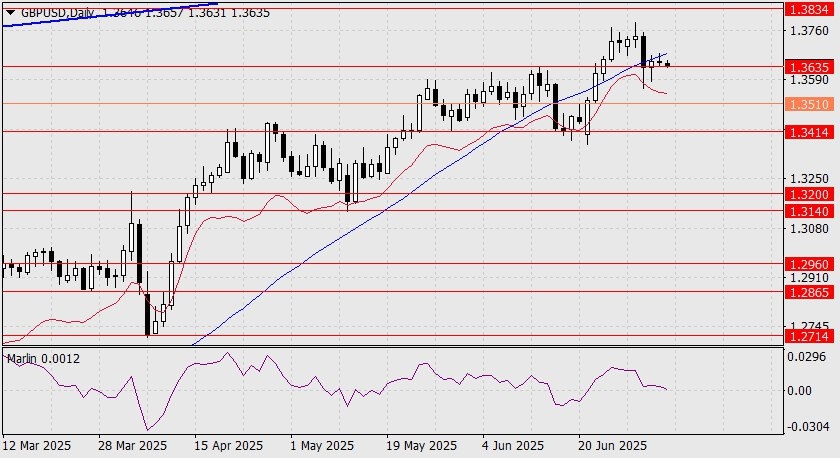 Четверг и пятницу фунт провёл в узком диапазоне между уровнем поддержки 1.3635 и сопротивлением линии Крузенштерна дневного масштаба