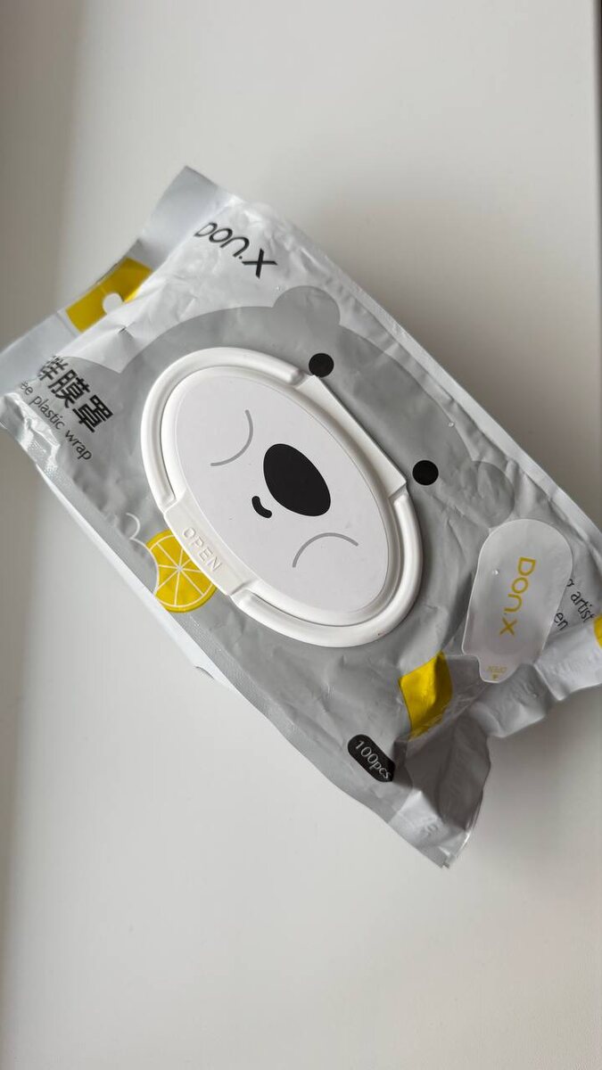 Называется пищевая пленка, но это по формату как шапочки для душа только из пищевой пленки и на резиночке!
