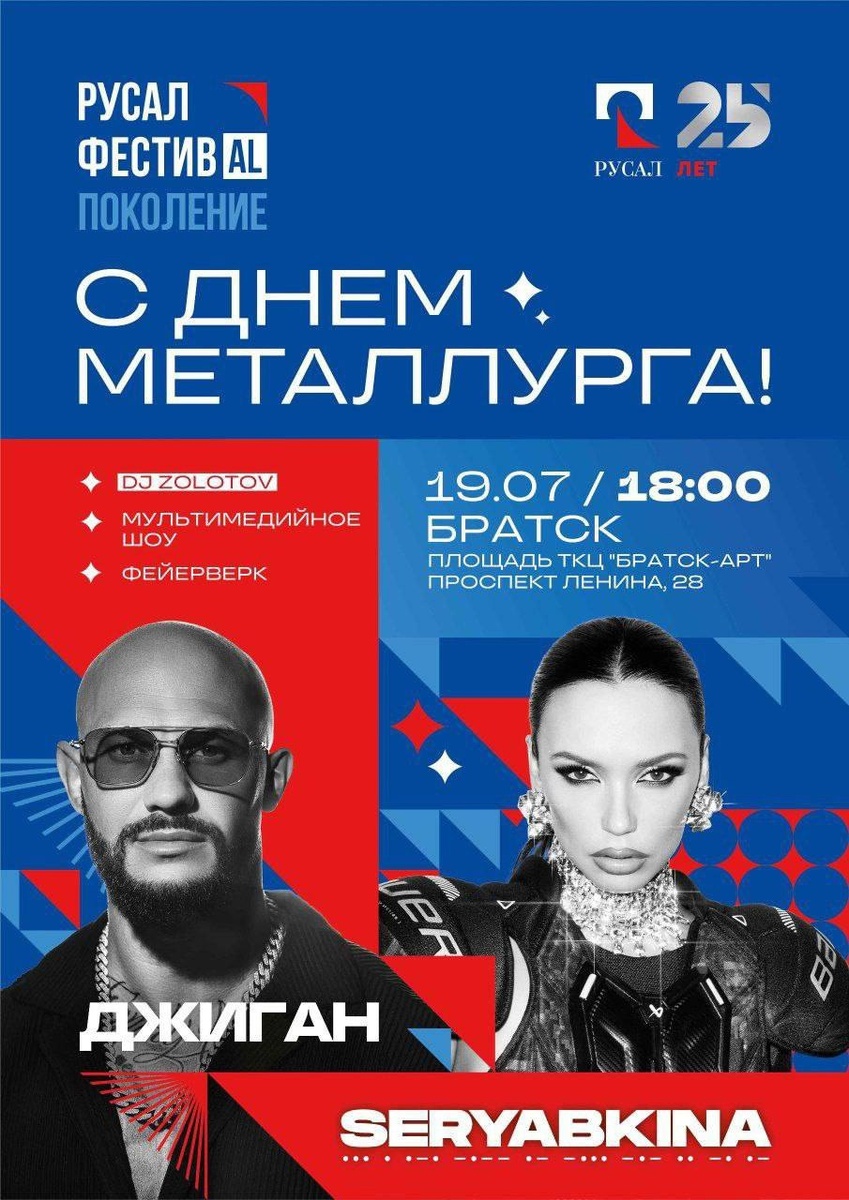 SERYABKINA и ДЖИГАН будут выступать на дне металлурга в Братске