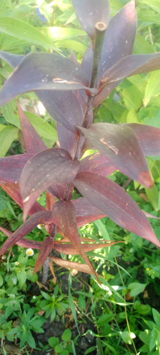 Вот такую картину увидела вчера у знакомой. История как всегда простая-купила весной новые луковицы, посадила и стала ждать чего расцветет. Вдруг пересорт. А вместо пересорта на листочках сначала появились небольшие красные пятнышки, а после и вообще стали полностью фиолетового цвета. Знакомая упорно ждала когда же бутон раскроется. Но... Как видите на фото он просто засох и отвалился. К сожалению мы не рождаемся с огромным багажом знаний, а опыт приходит путем проб и ошибок. На фото одно из многочисленных грибковых заболеваний. Ничего страшного не было бы, если вовремя использовать препараты для профилактики заболеваний. А у лилий их очень много!!! Не знаю что с этой в итоге будет 50/50. Итак. Поделюсь что делаю я. У меня лилии прорастают очень рано. поэтому как только появляются первые ростки (а это начало марта) я опрыскиваю медьсодержащими препаратами "Хом" или "Оксихом". Обязательно обработать и землю вокруг. Кстати, обычно в это время начинаю делать и первые подкормки и об