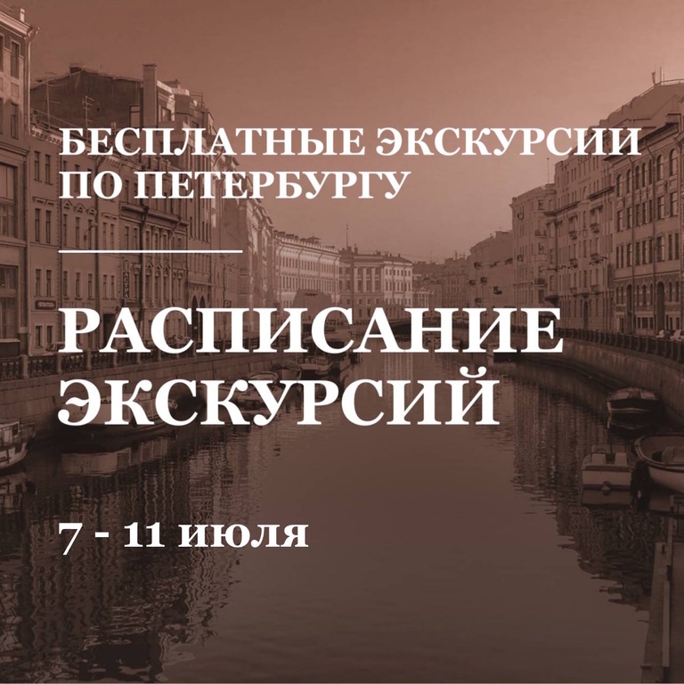 Друзья, расписание: ПЕШИЕ ЭКСКУРСИИ: Запись — > https://clck.ru/3MwwZb 7 июля (понедельник) Бесплатные: 12:00 — 13:30 "Восстание декабристов" 16:00 — 18:00 "По тихим улочкам Коломны..." 1 часть 17:00 — 18:30 "Истории вокруг Астории" 8 июля (вторник) Бесплатные: 11:00 — 12:45 "Прогулки по Воскресенской" 12:00 — 13:30 "Тайна трёх площадей" 13:00 — 15:00 "Модерн на Каменноостровском проспекте" 14:00 — 16:00 "Человек на букву Хармс" 16:00 — 17:30 "Дворцовые истории на Дворцовой набережной" 18:00 — 20:00 "Царскосельские Музы Александра Пушкина" (г. Пушкин) Платные: 16:00 — 17:30 "Музей-квартира семьи Бенуа (с мини-концертом на арфе)" 9 июля (среда) Бесплатные: 12:00 — 13:30 "В поисках носа майора Ковалева, или гротескный Петербург Гоголя" 12:00 — 13:30 "Как стать миллионером и закончить жизнь в чемодане" 12:30 — 14:30 "Битва железных канцлеров. Петербург Горчакова и Бисмарка" 13:00 — 15:00 "Остров поэтов. Серебряный век на Васильевском" 14:00 — 15:30 "Золотой век русского меценатства.