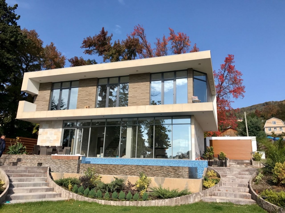 Проект дома определяется климатом, местом положения на ландшафте местности и сейсмичностью региона. Как правило побережье Черного моря, это склоны и горы. Практически невозможно найти ровный участок. Поэтому, можно рассмотреть вариант с цоколем, заглубленным одной стороной в склон. А вторая сторона – это вход.