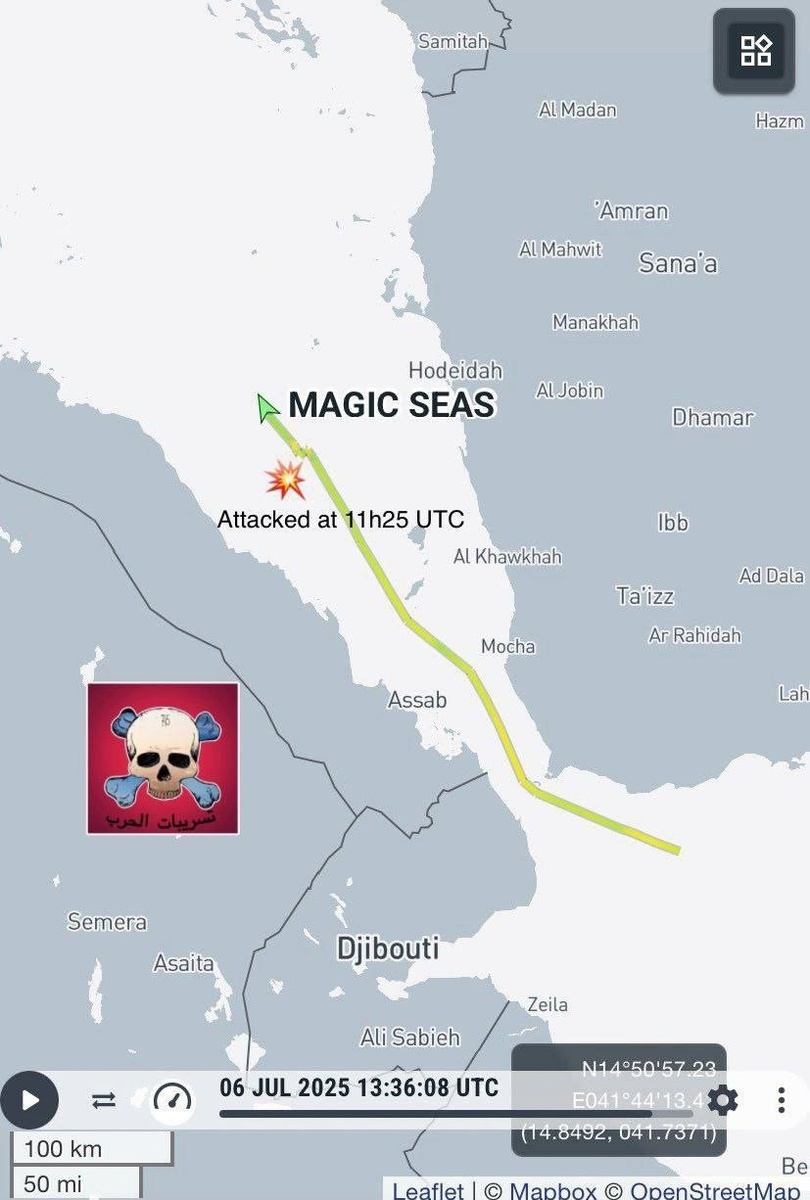 В воскресенье, 6 июля 2025 года, в Красном море у юго-западного побережья Йемена произошло нападение на коммерческое судно. Согласно сообщениям британского агентства United Kingdom Maritime Trade Operations (UKMTO) и экспертной оценки компании Ambrey, греческий балкер "Magic Seas" под либерийским флагом подвергся скоординированной атаке.