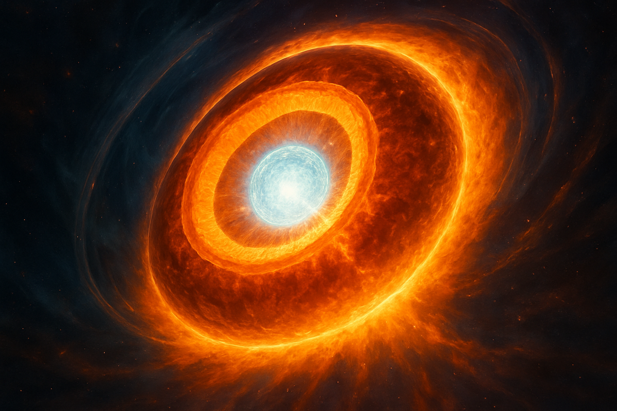 Название: Структурная модель коллапса звёзд: фазовые переходы и роль образования сверхтяжёлых элементов Аннотация: В данной работе предлагается структурная и информационно-ориентированная модель эволюции и коллапса массивных звёзд, выходящая за рамки традиционных парадигм, сосредоточенных исключительно на исчерпании ядерного синтеза. Мы рассматриваем поэтапную модель синтеза, в которой внутреннее строение звезды представлено как стратифицированная структура ядерного «конструктора» — исходного материала. Предполагается, что коллапс звезды — это не просто гравитационное явление, а структурно-энергетический фазовый переход, запускаемый формированием конечного сверхтяжёлого элемента, уникального для каждой звезды. Такая модель объединяет макроскопическую динамику звезды с микроскопической перестройкой вещества. 1. Введение Традиционная астрофизика рассматривает коллапс звезды в первую очередь как следствие образования железного ядра и прекращения экзотермических процессов синтеза. В да