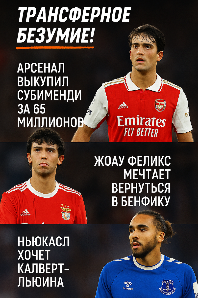 Футбольное лето 2025 года набирает обороты — клубы спешат укрепить составы перед новым сезоном. В центре внимания: громкий трансфер в АПЛ, ностальгия по родному дому и новая охота на нападающего. Лондонский «Арсенал» официально подтвердил подписание 26-летнего полузащитника Мартина Субименди. Испанец перешёл из «Реал Сосьедад», где был ключевой фигурой в течение нескольких сезонов. «Я знал, чего хочу. “Арсенал” — это стиль игры, который мне идеально подходит», — признался Субименди после подписания контракта. Мартин проведёт предсезонную подготовку в Sobha Realty Training Centre и будет выступать под номером 36. В его активе — Кубок Испании, серебро Олимпиады, победа на Евро-2024 и трофей Лиги наций. Для «Арсенала» это приобретение — ставка на интеллект, стабильность и опыт международного уровня. Форвард «Челси» Жоау Феликс признался, что серьёзно рассматривает переход в «Бенфику» — клуб, в котором он вырос и сделал имя. «Мне нужно быть дома. “Бенфика” — клуб моего сердца», — сказа