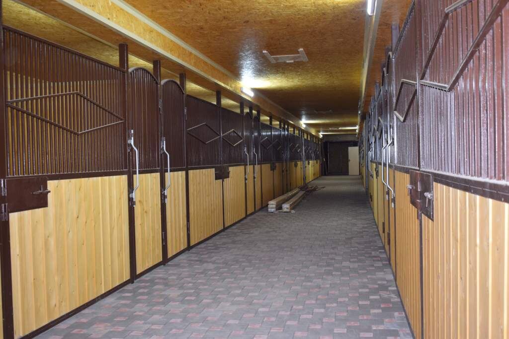 Так, денники с индивидуальными кормушками сделаны из натуральных материалов. Полы выложили из кирпича специальным образом — елочкой. Это наше ноу-хау, чтобы в будущем пол можно было быстро отремонтировать, если какой-то кирпич придет в негодность. Это лучше, чем бетон, и менее затратно, чем дорогая доска, наподобие лиственницы. Отделка денника снаружи выполнена деревом, а внутри — березовой толстостенной фанерой…»