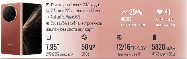 Компания Honor официально представила Magic V5 пару дней назад, а сегодня опубликовала новое рекламное видео для телефона, которое определенно отличается от предыдущих. На видео видно, как Magic V5 выдерживает имитацию сильного ливня, что неудивительно, учитывая его класс защиты IP59 от струй воды под высоким давлением. Затем телефон замораживают, а затем подвергают воздействию очень высокой температуры. А потом начинается самое странное. В телефон стреляют стальными шариками, чтобы продемонстрировать его прочность, и, конечно же, он без проблем выдерживает удары. Смотрите сами. Таким образом, Honor Magic V5 позиционируется как невероятно прочный, несмотря на то, что он складной. Он оснащён складным экраном LTPO AMOLED с диагональю 7,95 дюйма и разрешением 2172x2352, внешним дисплеем с диагональю 6,43 дюйма и разрешением 1060x2376, процессором Snapdragon 8 Elite, 12/16 ГБ оперативной памяти, 256 ГБ/512 ГБ/1 ТБ встроенной памяти и аккумулятором ёмкостью 5820 мАч с поддержкой проводной з