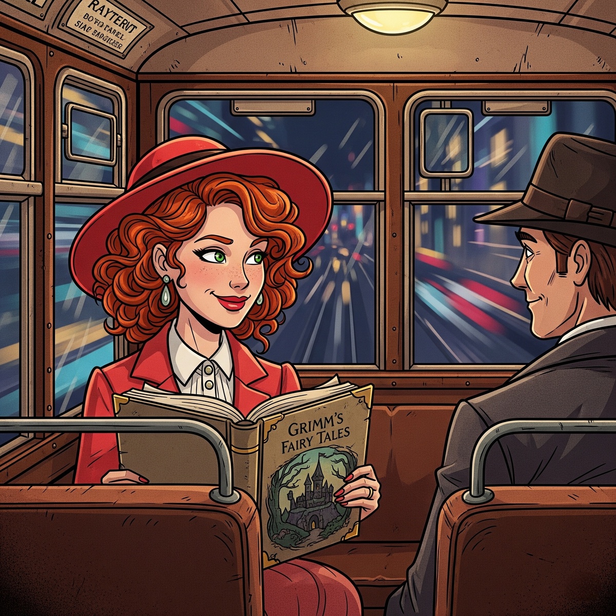 Дверь вагона со скрипом отъехала, и в салон ворвался сквозняк, пахнущий свежим дождём. А следом за ним — она. Высокая, с целым ворохом рыжих волос, которые ярким пятном выбивались из-под такой же рыжей шапки, словно осенний лист, принесённый ветром. В руках она прижимала толстую, зачитанную до дыр книгу.