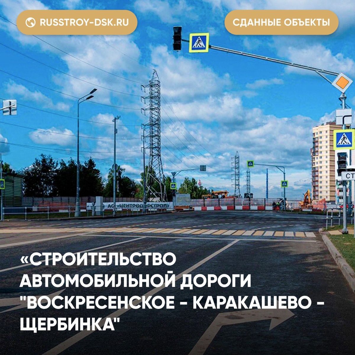 Компания «РУС-СТРОЙ» в 2023 году выполнила строительство дороги Воскресенское – Каракашево – Щербинка. Трасса протянулась от поселения Воскресенское до города Щербинка в Новой Москве. Она обеспечивает перпендикулярное направление между Калужским и Варшавским шоссе. Протяженность дороги составляет 11 км. Проезжая часть трассы имеет четыре полосы для движения – по две в каждую сторону и дополнительные полосы для левых поворотов. Подробнее: https://stroi.mos.ru/road/trunk/92?from=cl