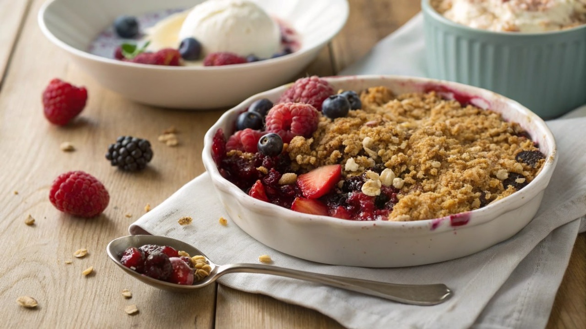 🍓 ЯГОДНЫЙ КРАМБЛ БЕЗ МУКИ — ПОЛЕЗНЫЙ ДЕСЕРТ 🌿 ✨Хрустящий сверху и нежный внутри, этот ягодный крамбл — мечта каждого, кто любит десерты без чувства вины! 🍒 Без муки и яиц, только ягоды, овсянка, орешки и ароматная корочка. 🧾 Вам понадобится: 🍓Свежие или замороженные ягоды — 500 г 🧊 Сахар — 50–70 г 🍟 Крахмал — 1 ст.л. 🍚 Овсяные хлопья — 200 г 🥠 Коричневый сахар — 100 г 🥗 Орехи — 50 г 🍾 Растительное масло — 80 мл 🍴 Корица, ваниль, соль — по вкусу 🍥 👩🍳 Готовим: 1️⃣ Смешайте ягоды с сахаром, крахмалом и ванилью. 2️⃣ Выложите в форму. 3️⃣ Отдельно приготовьте овсяную крошку с орехами и маслом. 4️⃣ Покройте ягоды смесью и запекайте 25–30 мин при 180°C. 💡 Подавайте тёплым, с ложечкой мороженого или просто так — он и так самодостаточен! #десерт@UsefulDelights