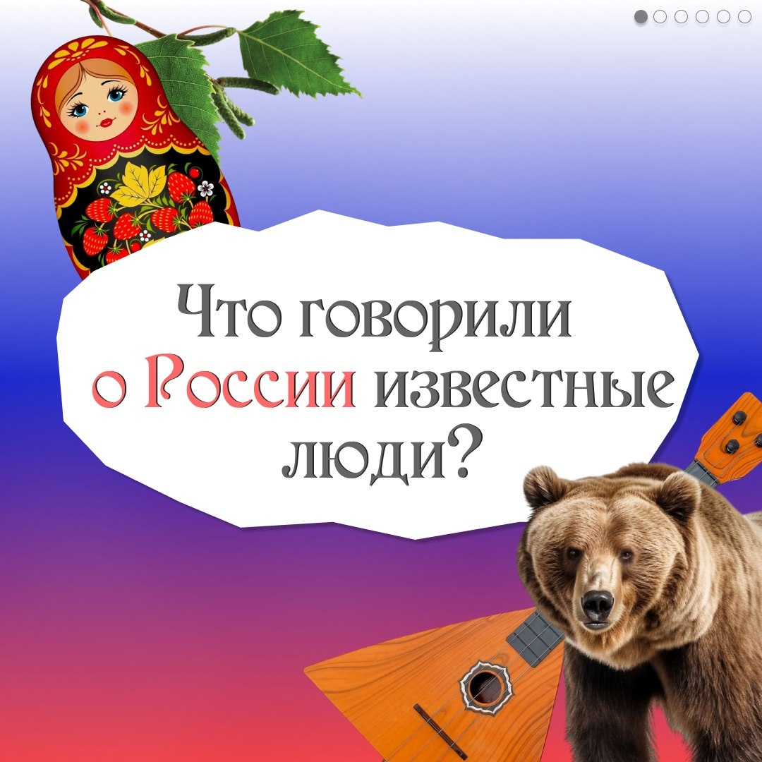 Россия — страна бескрайних просторов, богатой истории и великих свершений! 🇷🇺 ⚡️Интересно, как описывали нашу страну великие умы прошлого? Тогда скорее открывайте карточки. Как бы вы продолжили фразу: «Россия — это...»? Пишите в комментариях! ✨