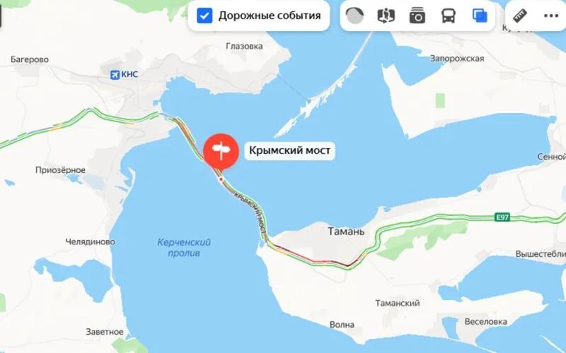 По данным на 10 утра 7 июля, перед Крымским мостом фиксируется большая пробка. Со стороны Керчи затор нет, как и часом ранее. В очереди со стороны Краснодарского края стоят 1100 транспортных средств. Время ожидания составляет более трех часов. Часом ранее проезда ждали 1150 машин, сообщили в ТГ-канале оперативной информации о ситуации на мостовом переходе. До полуострова и в обратном направлении в настоящее время можно добраться двумя способами: по федеральной дороге Р-280 и Крымскому мосту. Автодорожный маршрут, проходящий по трассе «Новороссия» от Ростова-на-Дону до Симферополя, расположен на северо-западе от Азовского моря и пересекает такие города, как Ростов-на-Дону, Мариуполь, Мелитополь и Симферополь. Длина составляет более 630 км, а время в дороге — около 9,5 часа (без учета прохождения двух АПП: Весело-Вознесенка и Джанкой).
