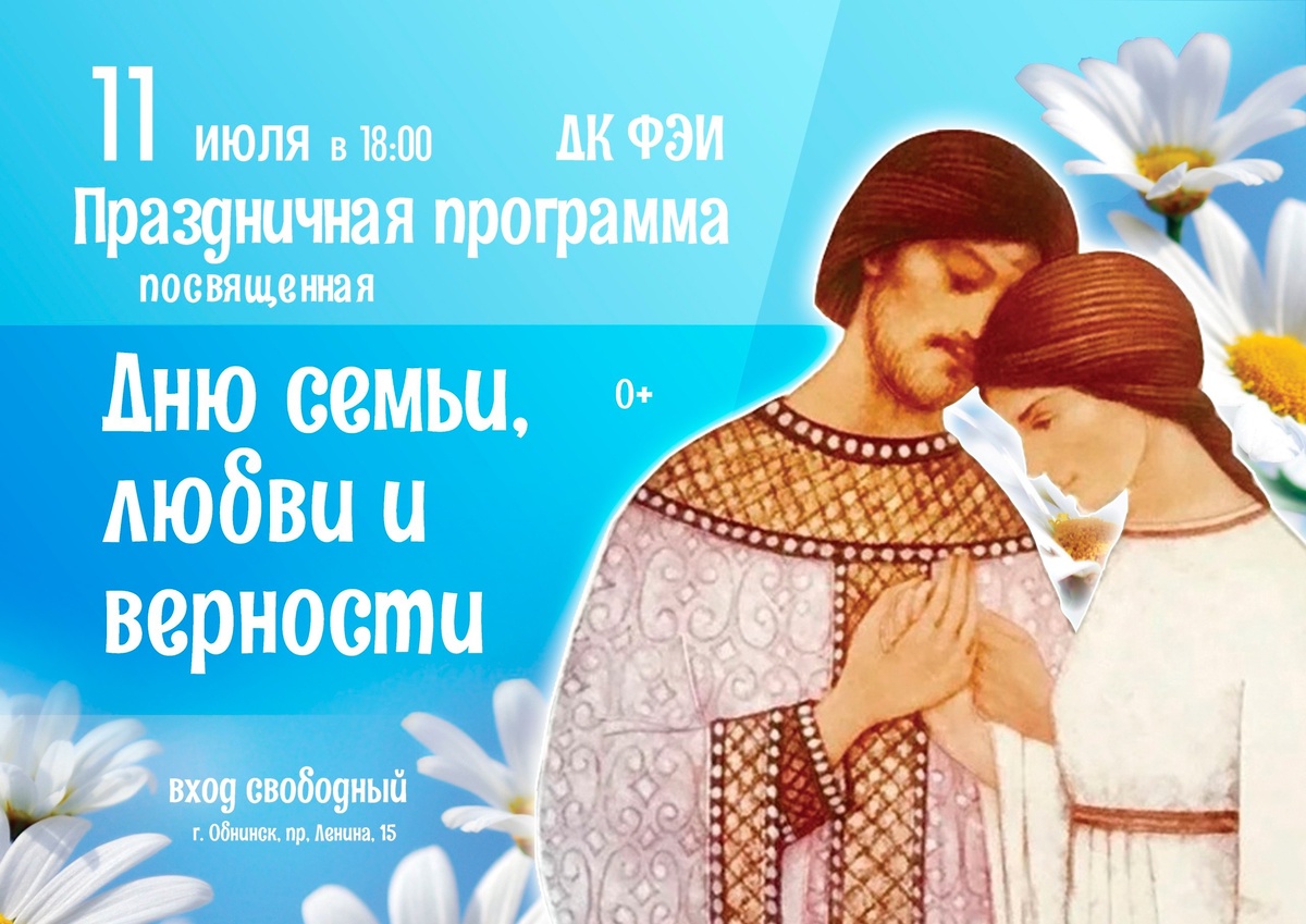 🎉11 июля в ДК ФЭИ в Обнинске состоится праздничная программа, посвящённая Дню семьи, любви и верности
