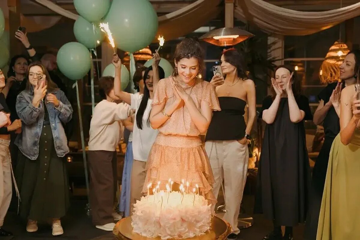 Заглянули на огонек сам Леонид Ярмольник, режиссер Дмитрий Литвиненко, актриса Виктория Агалакова, а также подруги и сестра именинницы Анастасия.