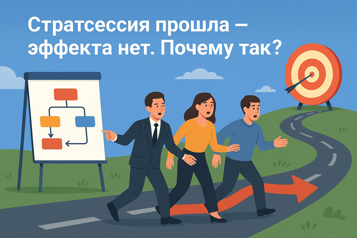 Даже самая крутая стратегическая сессия не гарантирует изменений в компании. Часто всё заканчивается на флипчарте. Рассказываю, почему так происходит и что сделать, чтобы команда не сбилась с курса через неделю после сессии. Недавно в кругу коллег — бизнес-тренеров и фасилитаторов — возникла дискуссия: