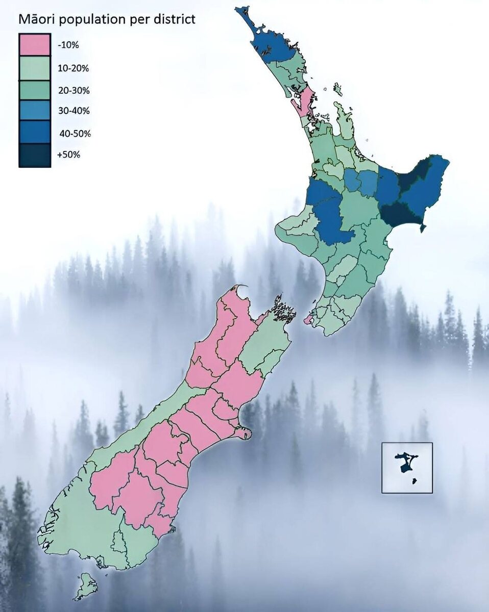 Карта Новой Зеландии с процентом маорийского населения Кстати, у моего тезки Дениса на его канале когда-то была целая серия документальных фильмов об этом народе. Если вам интересно, можете посмотреть: - Кто такие Маори - Фильм 1. Маори. Дети Хаваики - Фильм 2. Маори. Связанные одним прошлым - Фильм 3. Маори. Испытание цивилизацией - Фильм 4. Маори. Новые люди Новой Зеландии #НЗжизнь #НЗвидео
