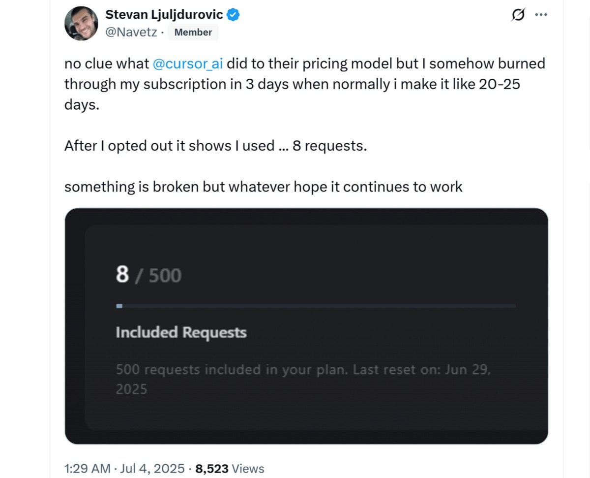 В начале июля 2025 года разработчики начали отменять подписку на ИИ-редактор кода Cursor, «разочаровавшись в компании