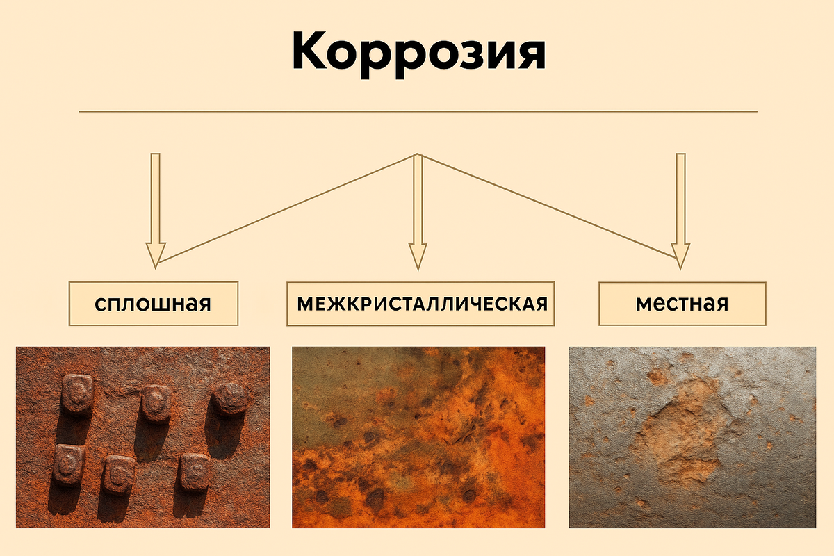 Существует множество классификаций коррозии, но в промышленной практике чаще всего выделяют следующие основные виды: