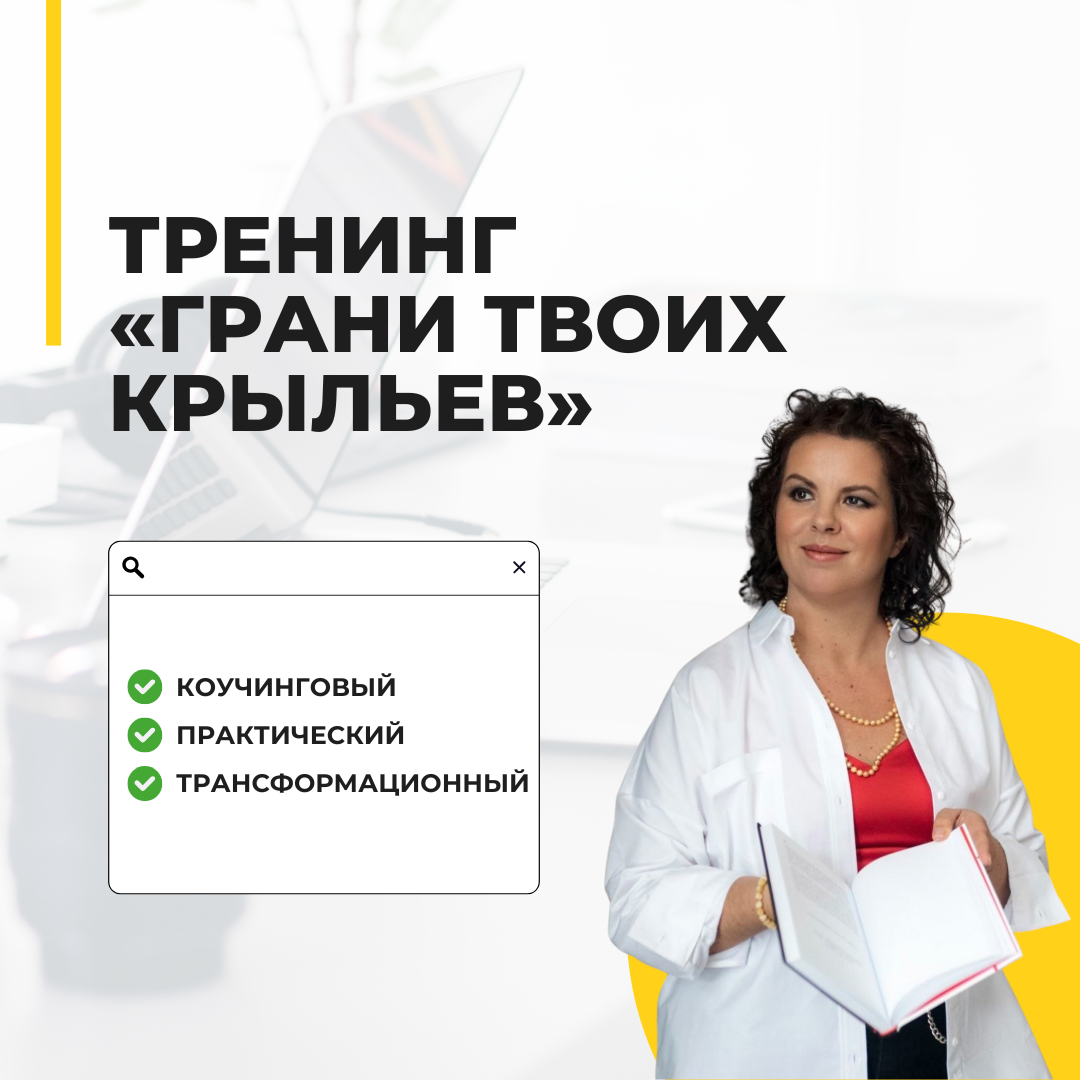 Знаю, что вы этого ждали! 🔥 Я рада представить вам коучинговый практический тренинг «Грани твоих крыльев», который поможет вам раскрыть свои истинные возможности и начать действовать! Что вы получите на тренинге? ✅ Глубокое понимание себя: исследуете ваши внутренние ограничения и страхи, которые мешают вам двигаться вперед. ✅ Практические инструменты: освоите техники, которые помогут вам преодолевать преграды и достигать поставленных целей. ✅ Конкретные шаги по достижению целей: составите план, который поможет вам реализовать свои идеи. Почему именно этот тренинг? «Грани твоих крыльев» — это не просто теория. Это практическое погружение в мир возможностей! Вы получите возможность не только учиться, но и сразу применять полученные знания. Запись на тренинг уже открыта! 🚀 Скорее присоединяйтесь: https://lileeva-centr.ru/grani P.S. стоимость вас приятно удивит 🥰