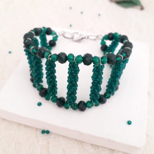 Материалы: бусины 2 мм. и 4 мм., бисер 10/0, мононить, игла, пины, замок и 2 колечка, круглогубцы (плоскогубцы), кусачки. Процесс плетения: https://youtu.be/—dMOln58Hw и https://rutube.ru/video/a41cd7b95e71fe9db9b6b2fb381fa37c/ Оставить кончик лески 10-15 см. Можно сделать стоп-бисерину, можно придерживать плетение рукой. Набрать 17 бисерин, провести нить в 15-ю в обратном направлении Набрать бисерину, пропустить одну из набора (14-ю) и провести нить в 13-ю. Также набрать бисерину, одну пропустить и пройти в следующую Таким образом проплести до конца ряда Далее добавляем по бисернике между промежутками. Нить проводим через выпирающие бисерины Проплетаем следующий ряд Плетём таким образом до тех пор, пока в каждом ряду не будет по 4 бисерины Складываем обе стороны вместе и соединяем, проводя нить через выступающие бисеринки. прячем кончики нитей в плетение. Получилась трубочка из 16 рядов. Далее делаем 2 трубочки по 14 рядов, 2 трубочки по 12 рядов, 2 трубочки по 10 рядов и далее необх