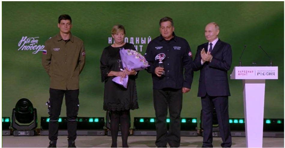 В Москве на форуме «Всё для Победы», который проходит в Национальном центре «Россия», президент России Владимир Путин вручил награды за добровольную помощь участникам специальной военной операции, а также поддержку жителей новых регионов и приграничных территорий. Одной из лауреатов стала семья Малий из города Курахово. Игорь Малий, несмотря на обстрелы, на мопеде доставлял пострадавшим медикаменты и перевязочные средства. Его супруга Валентина организовала временный пункт размещения, где люди могли укрыться и связаться с близкими. Их сын Илья во время атаки дронов отказался покинуть улицу, пока не вывел местных жителей в безопасное место. Кроме того, он до сих пор развозит питьевую воду по домам. Всего помощь от семьи получили более 150 человек. Премию получила также Ольга Язева — супруга священника, мать бойцов СВО. Она на пожертвования прихожан закупает ткани и вместе с сотней женщин-волонтеров шьет одежду и амуницию для бойцов. Еще один лауреат — Иван Солдатов. Он разработал систем
