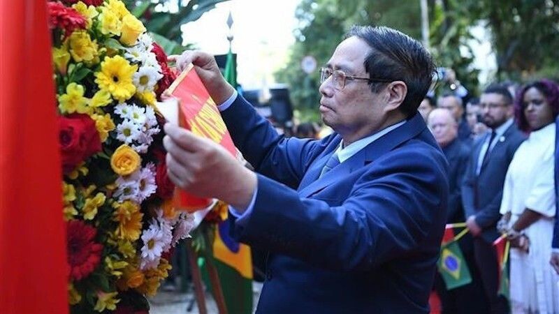 Премьер-министр Фам Минь Тьинь возлагает цветы к Мемориальной доске в честь Президента Хо Ши Мина в Рио-де-Жанейро