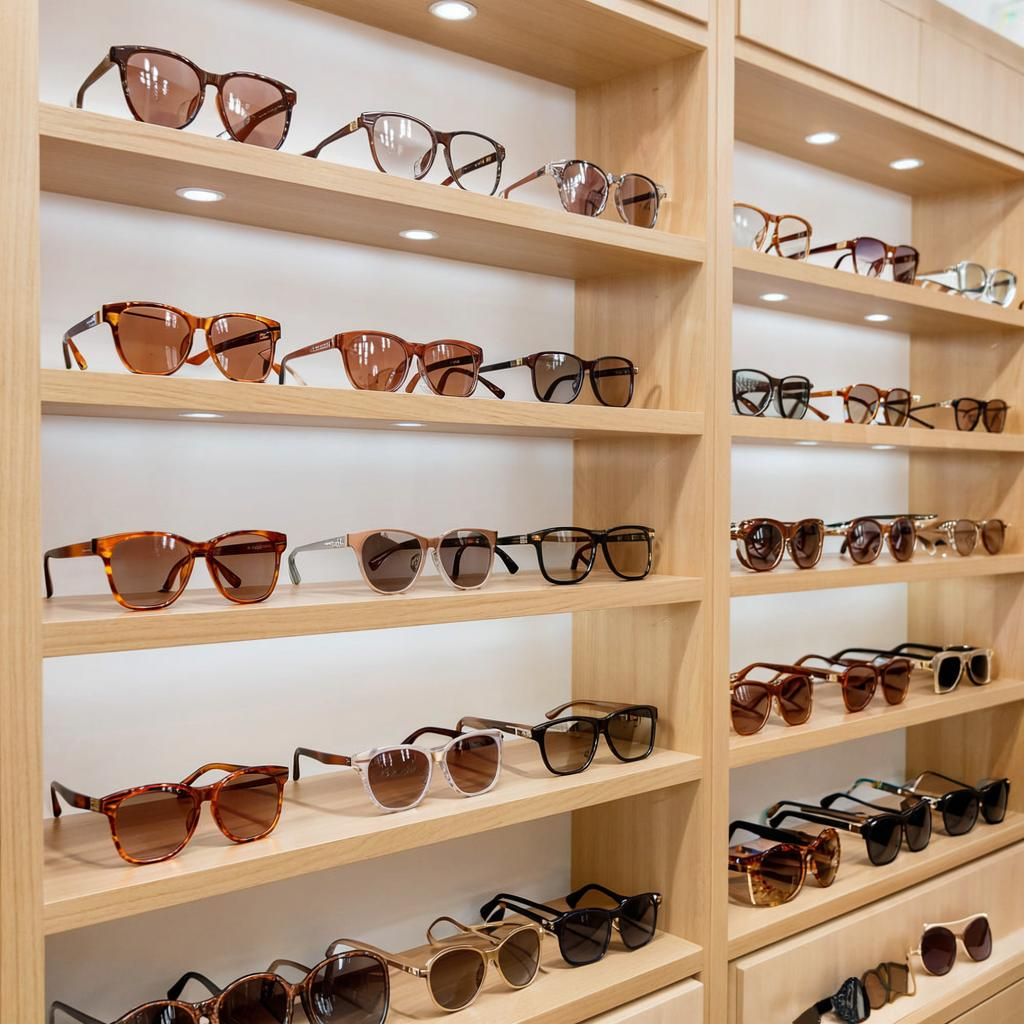 Еще пример: когда общий стиль вашей оптики в шоколадных тонах, то можно на полках расположить небольшие кусочки шоколада: