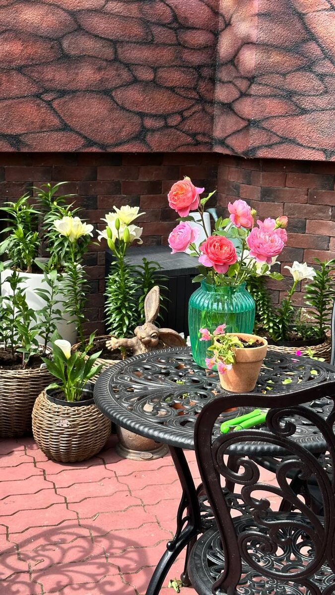 В центре внимания одна ветка Boscobel (Austin)❤️ Лилии в кашпо в этом году начались с цветения Бельведера (Ла-гибрид), без яркого аромата🔤дальше на очереди Roselilly.