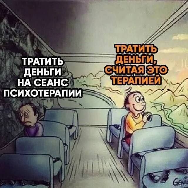 Трата денег, как психологическая терапия 💸Во-первых, трата денег — это не всегда про потребность. Часто это способ сказать себе: "я заслужил", "мне плохо, но хоть что-то хорошее", "пусть хоть эти кроссовки меня порадуют". Деньги становятся не средством обмена, а лекарством от одиночества, тревоги или скуки. Проблема в том, что эффект как у леденца — сладко, но ненадолго. 💸Во-вторых, такие покупки работают как эмоциональный анальгин. Укололи — полегчало. Но если не лечить причину, боль возвращается. После пятых новых штанов грусть всё равно приходит, да ещё и с чувством вины. Поэтому важно не только спрашивать "могу ли я себе это позволить", но и "почему я хочу это именно сейчас". 💸И главное — деньги не лечат, они отвлекают. Это как пытаться залатать дыру в лодке дорогим пледом. Красиво, но не спасает. Настоящая терапия — это не отказ от покупок, а честный разговор с собой: что именно я пытаюсь заглушить. И иногда лучший шопинг — это не в торговом центре, а на приёме у психотерапе