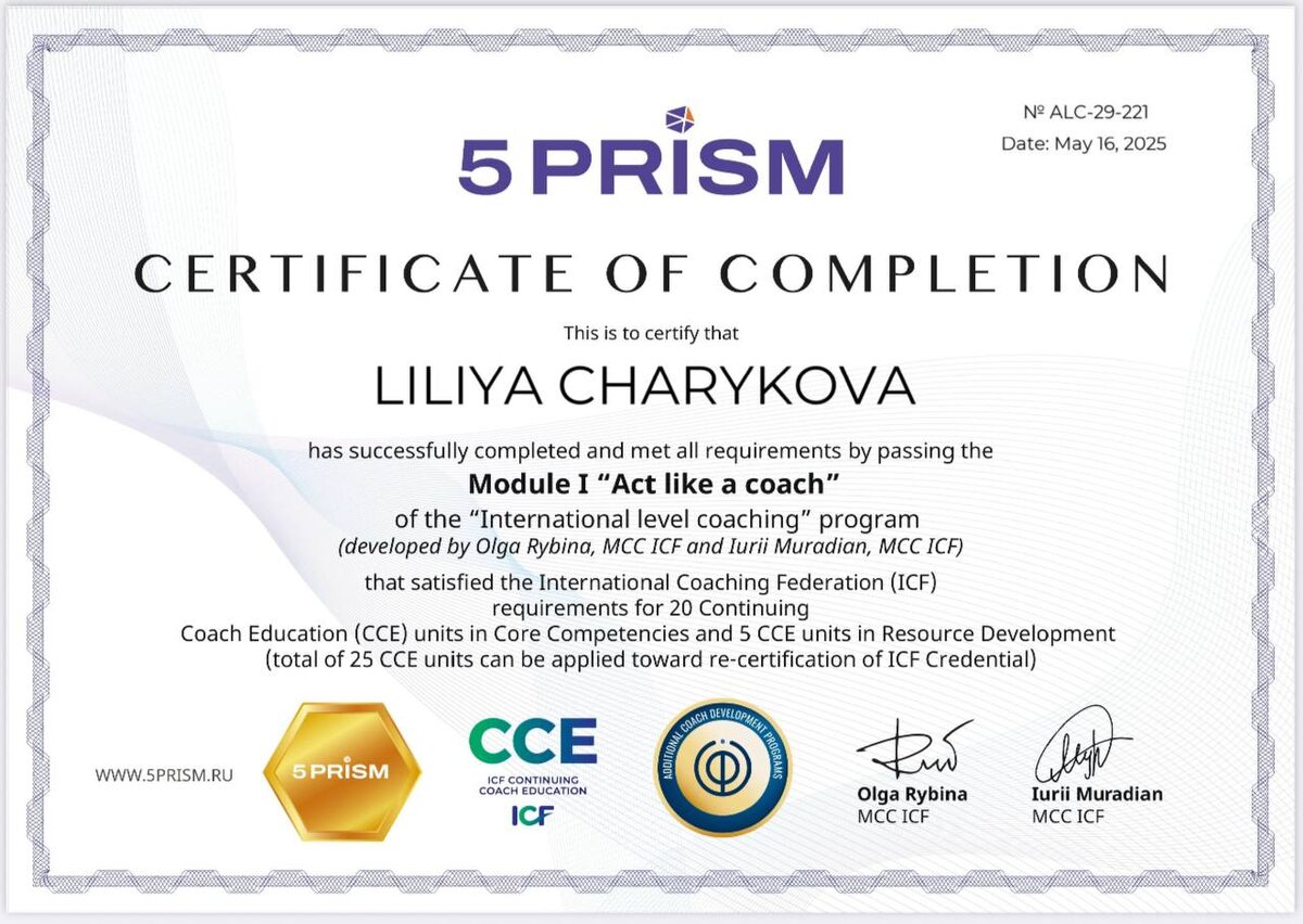 Еще один модуль и получу сертификат с правом практики как коуч международного уровня. Что мне дает обучение коучингу? ✅Фокус. На будущем и на результате. ✅Глубину исследования человеческой психики с целью результата для клиента. Так как частый запрос моих клиентов- хочу больше денег- это про результат, то теперь мне еще яснее и понятнее как помочь человеку приблизиться к его цели. И для тех моих клиентов, которые не хотят про маму и папу, а хотят про будущее - идеально. Ведь сам коучинг- это про будущее и про путь, который приведет человека в его будущее. И в который раз, подтверждаю для себя, что один из важных составляющих достижения цели - личная ответственность клиента. Ты достигнешь ровно того, что хочешь, потому что там фокус твоего внимания. В цели и в четком видении своего пути. От своего клиента мне нужна цель. А путь к ней мы строим вместе. И если вы уже знаете свою цель, финансовую или любую другую, и вы готовы взять на себя ответственность за ее достиже