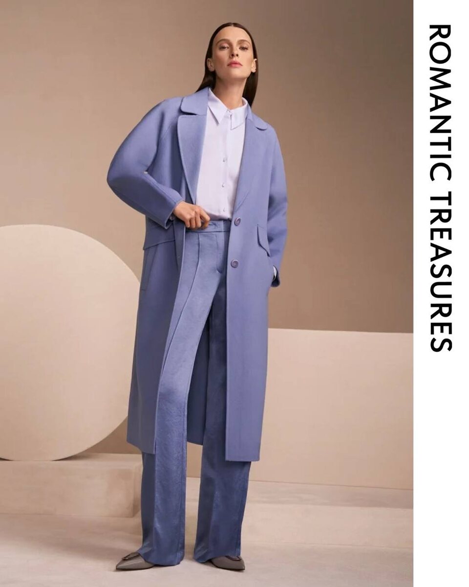Новая коллекция 💜 «Romantic Treasures» (романтические сокровища) – раскрываются в нежной палитре пудрового таупа и дымчатого сине-фиолетового, дополненной мягкими акцентами лаванды и сияющей белизны. Изысканные узоры с овальными и круглыми мотивами гармонично дополняют оба цветовых решения, украшая вискозный креп. Модели с узорами по всей поверхности представлены в жакетах, платьях и укороченных брюках, а также в светлых жакетах. Вязаные текстуры варьируются от тонкой вязки до крупного плетения. Лёгкие шёлковые блузки и платья из вискозного шифона с воланами становятся ключевыми элементами капсулы. В коллекции для активного отдыха представлены пальто, невесомый пуховик и укороченная куртка из искусственного меха, дополненная вязаным поясом. Коллекция доступна на сайте mcbuy.ru и в наших фирменных бутиках 💙