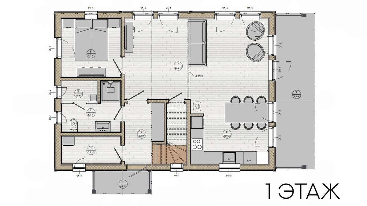 ✔️ Терраса 14,6 м² + крыльцо 3,2 м²