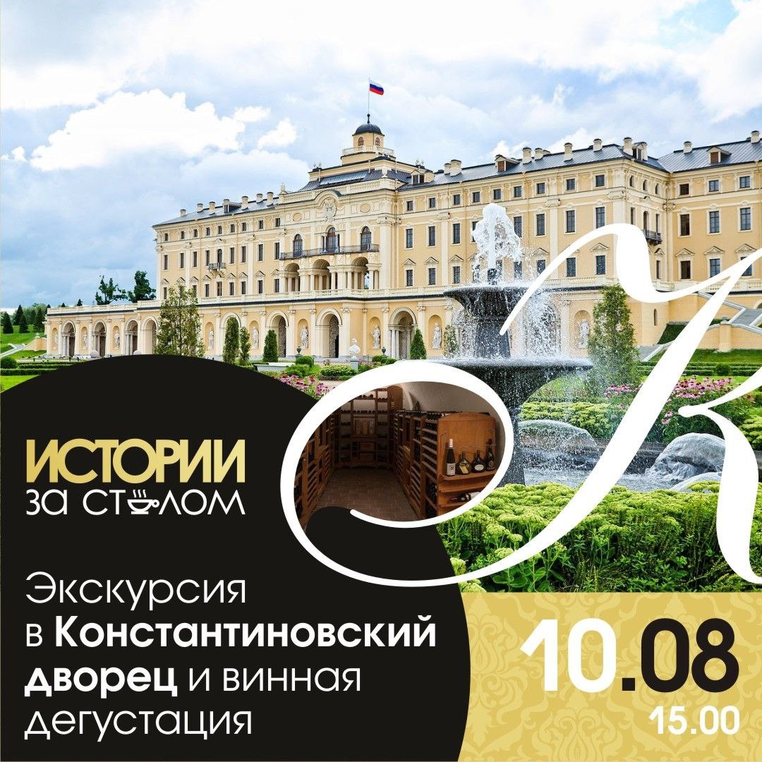🍷Экскурсия в Константиновский дворец и дегустация в винном погребе 10 августа в 15.00 🏰Сначала мы совершим экскурсию по дворцу. Маршрут по парадным залам Константиновского дворца с посещением гостиных для встреч в неформальной обстановке. Экскурсия позволяет составить полное представление об истории Стрельнинского дворцово-паркового ансамбля и о его современной функции в качестве «Дворца конгрессов». Далее пройдёт дегустация вина, которая начнется с краткого экскурса в винный погреб. Опытный сомелье расскажет об истории виноделия, удачных урожаях и сортовом составе вин. Далее гости переместятся в дегустационные залы, где в комфортной обстановке познают азы винопития и научатся раскрывать букеты вин. ⏰Продолжительность - 2.5 часа. Стоимость - 5990 рублей (включает экскурсию и дегустацию) или 6990 рублей (включает доставку, экскурсию и дегустацию). Запись @AnnaShuniaeva