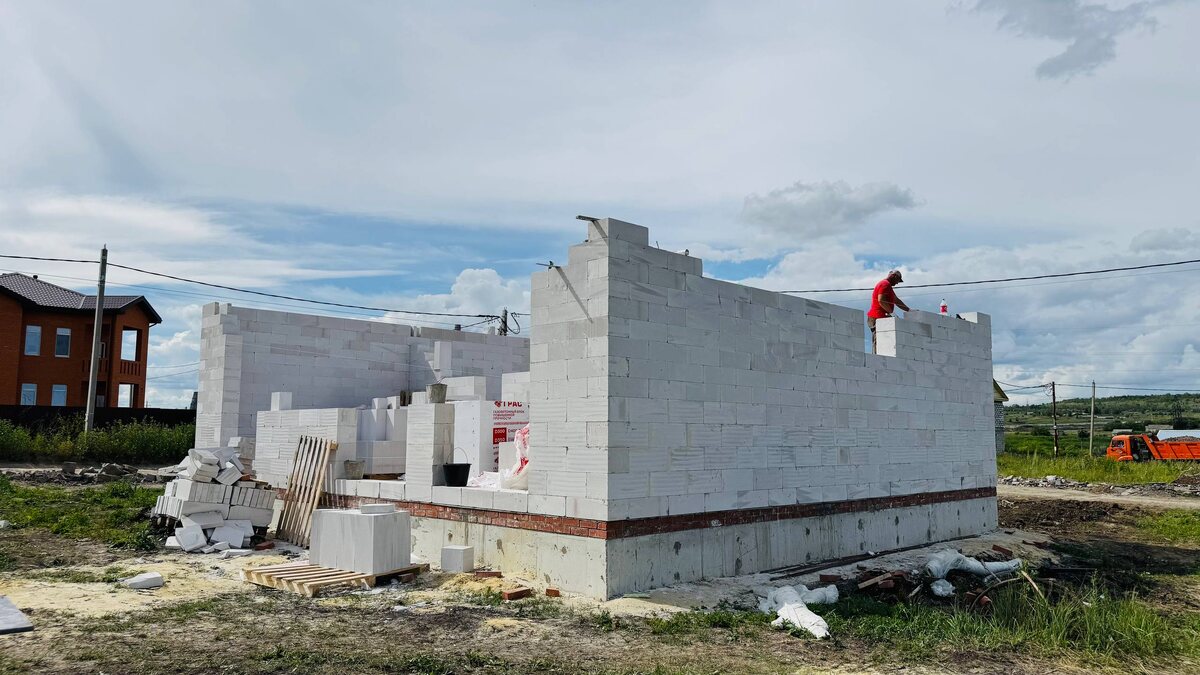 Объект в Расково: как идёт строительство ✅ На старте: — Забили железобетонные сваи — Смонтировали ленточный фундамент — Внутрь по всей площади засыпали и уплотнили песок — Залили монолитную плиту 🧱 Сейчас: — Кладём наружные и внутренние стены из газоблока, дом постепенно обретает форму 🔧 Далее по плану: — Монтаж армопояса для усиления конструкции