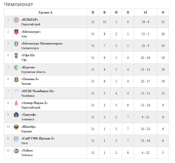 Турнирная таблица после окончания 11 тура по футболу зоны Урал и западная Сибирь сезона 2025