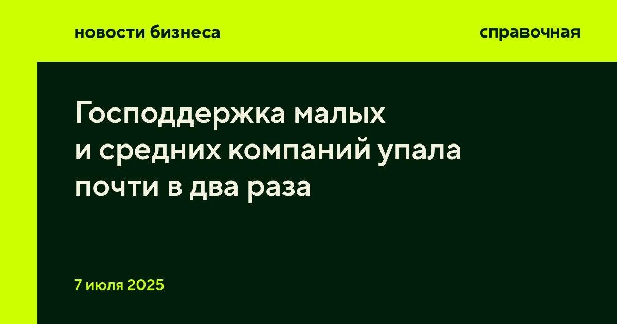 ↘️ Господдержка малых и средних компаний упала почти в два раза