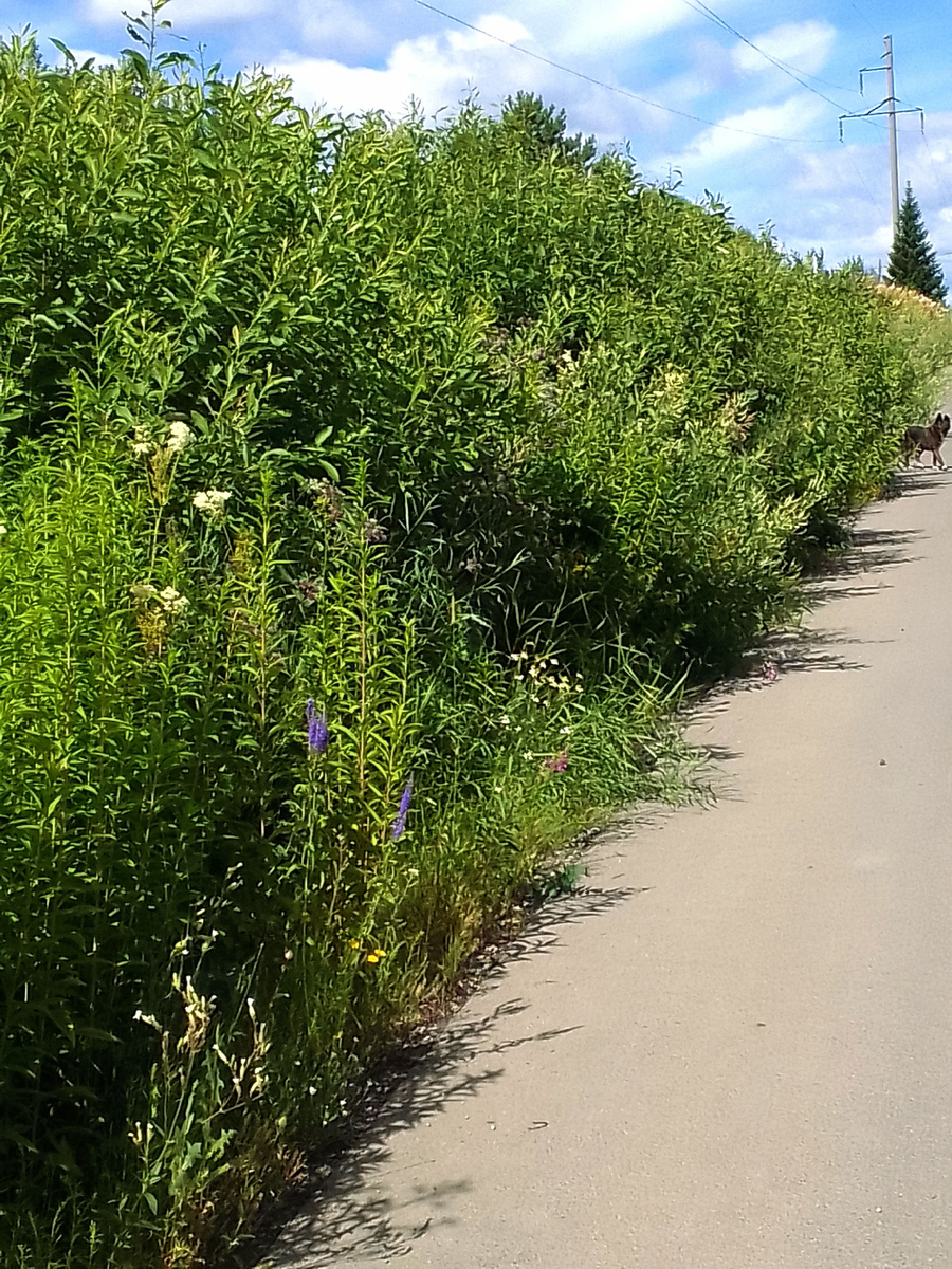 Помните я вам показывала, где ивовую лозу собирала на корзиночки, вон как заросло все, а между ивовыми кустами выросла малина, видимо с участка перешла, который за ней
