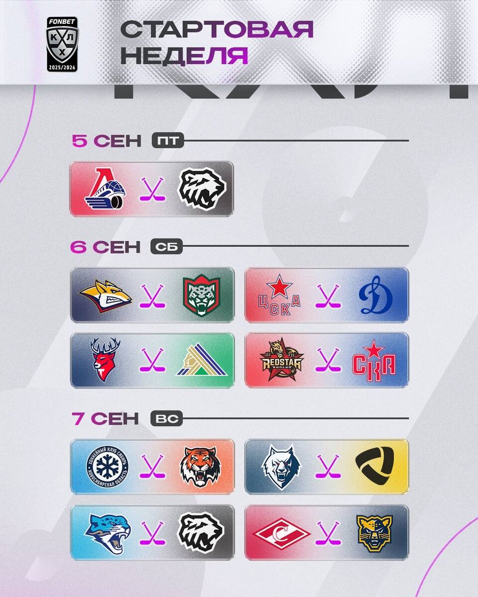 Полный календарь сезона Фонбет КХЛ 2025/2026.